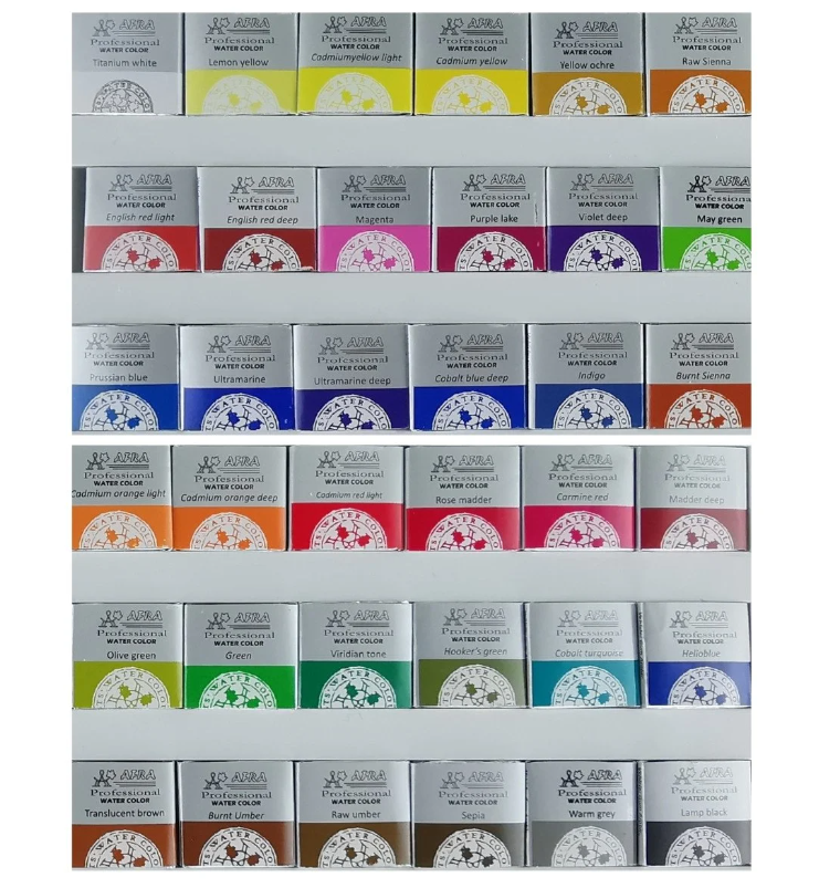 Afra Profesyonel Tablet Sulu Boya Seti 36 Renk Yarım Tablet