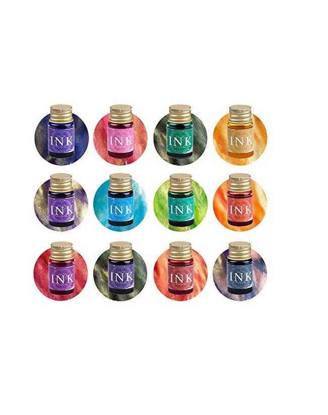 12 CANLI RENKLİ MÜREKKEP - Kaligrafi seti, çocukların zengin renklere olan ihtiyaçlarını karşılayan, her biri süslü altın tozu içeren 12 şişe kaligrafi mürekkebi içerir. (Tozu ve mürekkebi eşit şekilde karıştırmak için lütfen kullanmadan önce mürekkep şişesini iyice çalkalayın)