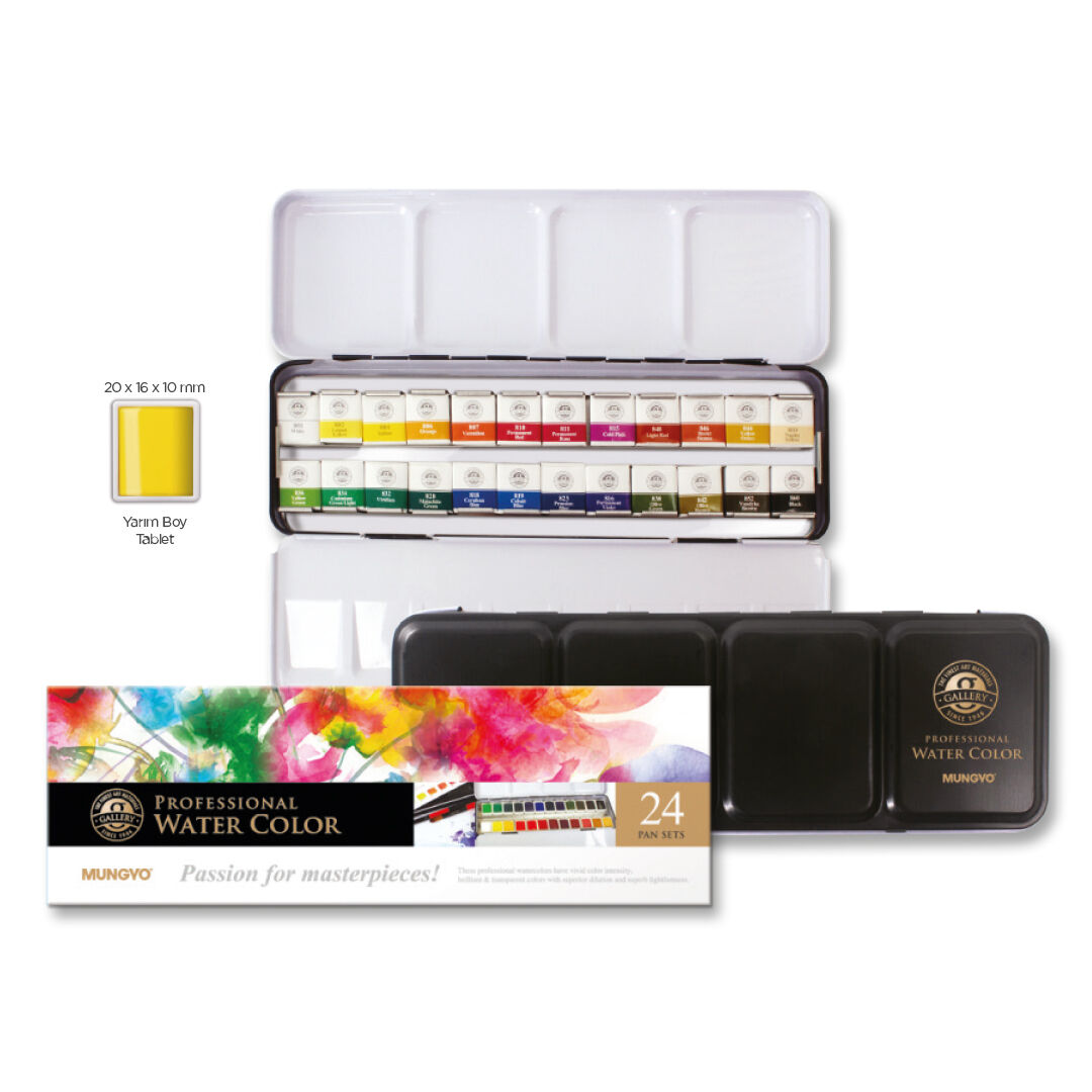 Mungyo Profesyonel Tablet Sulu Boya Seti 24 Renk Yarım Boy Metal Kutu