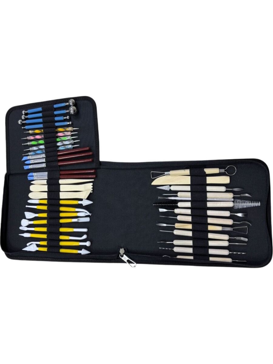 Seramik Heykel Polimer Kil Şekilendirme Modelaj Detay Seti 39 Parça Kumaş Çantalı